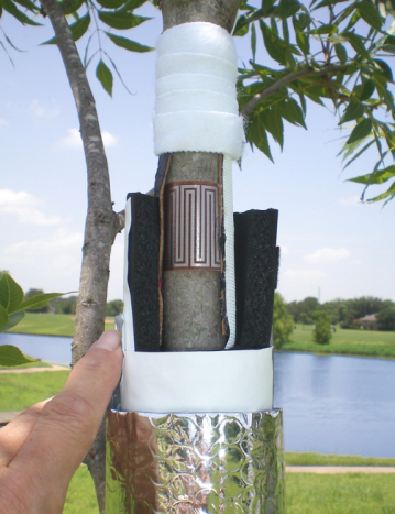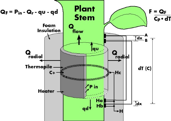 Dynagage包裹式傳感器利用能量平衡原理,通過測量植物蒸騰時水分運輸產生的熱量變化,進而確定植物的莖流速度,這是目前測量植物莖流可靠的技術方法。