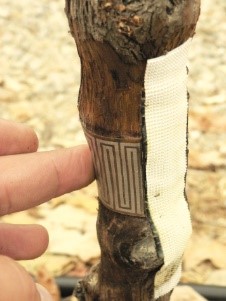 可測量8~29mm直徑的莖干,適用于葡萄、獼猴桃等藤本植物,其莖干的特點是多結節(jié),且相鄰兩個結節(jié)間距很短。測量時,傳感器可以纏繞在植物莖干上。該傳感器很薄,柔韌性強,用透氣性較好的彈力尼龍纖維做阻熱材料,其較短的豎向長度非常便于安裝,而且更易貼合具有不規(guī)則生理彎曲的莖干。型號如下: