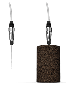 標配所含的100 mm長度的探針傳感器,用于測量土壤、軟材料、聚合物等易于插入的物質(zhì)。探針傳感器完全插入等溫的樣品中,并按下按鈕進行測量。180秒后,直接顯示熱導率和熱阻率的測量結果。數(shù)據(jù)可以保存在MicroSD卡,或?qū)⒅鳈C跟電腦連接并導出數(shù)據(jù)。